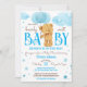Oso de peluche espera la invitación a la ducha de bebé azul y marrón invitación descarga instantánea