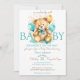 Invitación Oso de peluche espera la ducha de bebé marrón azul