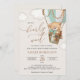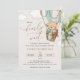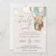 Invite a sus amigos y familiares con estilo y establezca el tono de su día especial con esta encantadora invitación a la ducha de bebé. El diseño presenta un oso de peluche con globo de aire caliente verde sobre fondo beige.