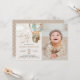Invite a los amigos y a la familia con estilo y establezca el tono de su día especial con esta encantadora invitación de cumpleaños. El diseño presenta un oso de peluche con globo de aire caliente verde sobre fondo beige.