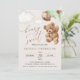 Invite a los amigos y a la familia con estilo y establezca el tono de su día especial con esta encantadora invitación de cumpleaños. El diseño presenta un oso de peluche con globos verdes de fondo beige.