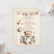 Un diseño encantador que presenta un oso de peluche en tonos pastel, rodeado de globos, regalos y estrellas. Decorado con una guirnalda de banderas, es perfecto para invitaciones, tarjetas de felicitación y otros productos festivos. Una opción versátil para eventos infantiles, especialmente cumpleaños.