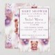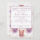 Invitación Oso de peluche púrpura y flores - Baby Shower