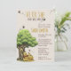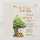 "Celebra la llegada de tu pequeña miel con una invitación llena de encanto atemporal de cuento de hadas. Esta caprichosa invitación para baby shower presenta a un querido oso clásico sentado felizmente bajo un gran roble con una dulce olla de miel. Abejas traviesas zumban alrededor del anuncio de 'Él o Ella', lo que hace que este sea el diseño perfecto para una fiesta mágica de revelación de género.