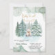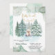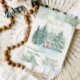 Celebre la inminente llegada de un precioso cachorro con nuestra adorable invitación a la ducha de bebé inspirada en el oso polar "baby it's fría out", todo ello rodeado por un sereno pinar nevado.
