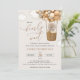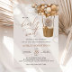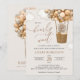 Invite a sus amigos y familiares con estilo y establezca el tono de su día especial con esta encantadora invitación a la ducha de bebé. El diseño presenta un oso bebé con globos beige de fondo beige.