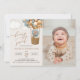 Invite a los amigos y a la familia con estilo y establezca el tono de su día especial con esta encantadora invitación de cumpleaños. El diseño presenta un oso bebé con globos azules sobre fondo beige.