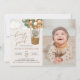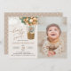 Invite a los amigos y a la familia con estilo y establezca el tono de su día especial con esta encantadora invitación de cumpleaños. El diseño presenta un oso bebé con globos verdes sobre fondo beige.
