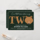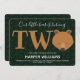 Nuestro pequeño club está haciendo dos invitaciones de cumpleaños. Esta invitación es marrón, verde y blanco, con la palabra "dos" en letras grandes con un ilustracion de cara de oso como última letra de la palabra. La invitación tiene un patrón de pinos al fondo. Simplemente, personalizar esta invitación, agrégala a tu carrito, y feliz cumpleaños a tu maravilloso bebé!
