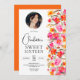 Invitación Otoño boho rojo naranja floral foto Cumpleaños 16