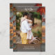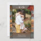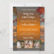 Invitación nupcial única con 4 de sus fotos favoritas enmarcadas por un diseño industrial rústico de otoño con hojas de colores.