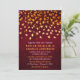 Esta rústica y burda invitación a una boda tiene hojas de oro en un fondo rojo angustiado. El texto combina tipografías cursivas y serif para un estilo moderno y elegante. Esto será perfecto para bodas otoño.