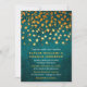 En esta rústica y gruesa invitación a la boda se exhiben hojas de oro en un verde azulado fondo azul angustiado. El texto combina tipografías cursivas y serif para un estilo moderno y elegante. Esto será perfecto para bodas otoño.