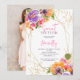 Caer color dorado rosa con la mano pintado con flores de acuarela Sweet 16 con girasoles naranjas bonitos, peonías rosadas, flores moradas y color verde follaje floral acuático, confeti purpurina de oro, borde geométrico de marco de Relieve metalizado de oro de terrario, un guión elegante, y simplemente agregar tu foto al fondo.