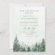 This elegant rustic watercolor pine tree forest wedding invitation can be personalized with your information in modern typography with your wedding website QR code on the reverse. Designed by Thisisnotme©