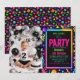 Our Little Retro Neon 80’s Birthday Party Photo Invitation. Personalized neon 80s theme invite with photo, perfect for a fun kids birthday celebration.