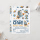 With its orange and blue tones, this gender-neutral invitation is perfect for any baby boy or girl who loves adventure. The playful “3…2…1… Blast Off!” headline adds excitement to your space-themed first birthday party, making it truly unforgettable.