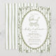 Invitación Oval Stripes Toile Floral Baby Shower Sage Green