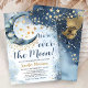 Invitación Over The Moon Baby Shower Boy Blue Twinkle Stars