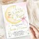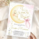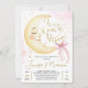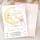 Invitación Over the Moon Baby Shower Girl Pink Bow Cute Moon