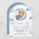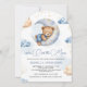 Invitación Over the Moon Sleeping Teddy Bear Blue Baby Shower