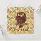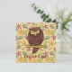 ilustracion personalizado de lechuza sentada en la rama del árbol bajo fondo beige sin costura con hojas.