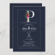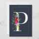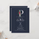 Invitación P Monograma Último Boda floral azul moderno inicia
