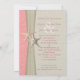 El diseño de las estrellas de bonito y las burlap crea un aspecto único para su boda en la playa o destino. Los tonos rosa bonito y los colores naturales ofrecen un aspecto único. Esta invitación está totalmente impresa. No hay una verdadera hamburguesa ni una estrella de mar.