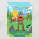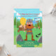 ¡Celebra el cumpleaños de tu pequeño niño vikingo con esta colorida invitación! Cuenta con un guerrero vikingo con casco con cuernos y espada. Está llamando a todos los niños a una fiesta frente a una casa vikinga mientras sostiene un globo. En la parte de atrás, hay un paisaje escandinavo y una casa vikinga con techo de paja decorada con una calavera y cabezas de dragón. En la parte delantera, hay un letrero que dice FIESTA, la mascota lobo del niño y globos amarillos. ¡Es ideal para una fiesta de cumpleaños con tema vikingo! Esta invitación de cumpleaños para niño se personaliza fácilmente para tu evento agregando tus detalles.