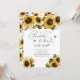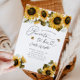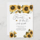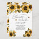 Tarjeta de plantilla rústica para la invitación a la ducha para bebés, que incluye ilustracion acuarela de girasoles amarillos y aliento del bebé con abejorros. Perfecto para una ducha de verano. El texto dice "vamos a duchar a los padres para que estén."