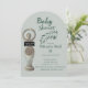 This elegant Pagan Goddess Baby Shower Invitation featuring a statue of the goddess with a spiral on her belly. Plus leaves on a delicate, lovely green that promises growth.