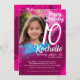 Celebra tu 10 cumpleaños especial con esta invitación artística y brillante de diseño de pizarra de pintura rosa. Invite a su personalizable a que añada fácilmente su propia foto, nombre y detalles para hacer esta hermosa celebración de cumpleaños verdaderamente única.