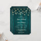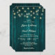 Invitación a una boda verde azulada de campo con luces de cuerda sobre un fondo de madera de granero. Diseño de tarjetas perfecto para invitar a sus huéspedes a su verde azulado campo rústico, jardín, patio trasero, fiesta de bodas al aire libre o de granero. Elementos coincidentes disponibles.