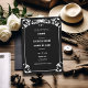 Una invitación a una boda campestre occidental en blanco y negro con un marco vintage elegante, sofisticado pero sencillo y elegante, con letras de estilo occidental. Romántico y lleno de encanto rústico occidental, es una encantadora elección para un boda de granero, un boda al aire libre, un boda de barbacoa o cualquier entorno rústico con un tema de boda rústico occidental y vaquero, también formal y elegante.