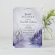 Invitación de paisaje de invierno violeta y copa de vino para despedida de soltera.
