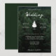 Celebre el amor bajo los árboles con esta invitación de boda rústica del bosque que presenta un fondo de foto de bosque verde de Destei. Una silueta de pino añade un toque juguetón que separa los nombres de la pareja, mientras que la tipografía elegante y moderna guía a los invitados a través de los detalles de su día especial. La parte trasera presenta un fondo verde profundo con una silueta de pino coincidente y un área de texto personalizable para los nombres de la pareja y la fecha de la boda. Una opción cálida y natural para bodas al aire libre, de aventuras o con temática de senderismo.