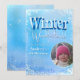 Celebra tu cumpleaños y diviértete en el frío. El diseño de la invitación se destaca por su título elegante y moderno con un fondo de bosque nevado