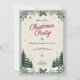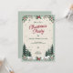 Una vintage invitación a la fiesta navideña que evoca un ambiente sereno y acogedor, adornado con un delicado borde de hojas huecas, bayas y ramas de pino que enmarcan un paisaje nevado con abetos, todo ello en tonos suaves de rojo intenso, verde bosque y crema antigua, complementado con copos de nieve y puntos de polka. ¡Puedes usarlo para fiesta de Navidad en casa o en una empresa e incluso para un fiesta de Nochevieja!