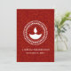Un fondo paisajista rojo es sorprendente en comparación con el blanco brillante del saludo Diwali y la imagen gráfica de una lámpara iluminada en la parte delantera de esta invitación del partido Diwali. Está rodeada por un círculo blanco ornamentado. El reverso repite el fondo paisley rojo con toda la información del evento. Disponible con productos coincidentes.