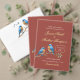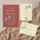 Invitación Pájaros azules de coral suave y Boda de guiones do