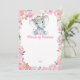 Deseos para Bebé Niña con Elefante y flores. Tarjeta impresa con palabras de sabiduría en acuarela rosa súper adorable.