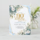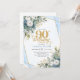 Invitación Pale blue gold leaves soft chic 90th birthday