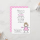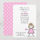 Palito de niña con taza de café rosa, pelo y vestido de lunares sobre fondo blanco para desayuno de cumpleaños 60. Todo el texto se puede editar. La edad se puede cambiar. El color del fondo blanco se puede cambiar.