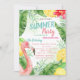 Invitación Palm Leaf, Flamingo Pool Birday Party