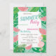 Invitación Palm Leaf Watermelon Pink Flamingo Fiesta de cumpl