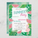 Estas invitaciones incluyen hojas de palma, sandía y flamingo rosado. Esta invitación se personaliza fácilmente para su evento simplemente añadiendo sus detalles.