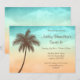 Dulces 16 invitaciones para la fiesta de Luau. Un cielo azul tropical y una textura de arena con un ilustracion de palmera marrón. Elegante y moderno fiesta tropical de playa con 16 invitaciones dulces de cumpleaños.