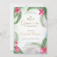 Flores tropical con hojas de palma. Esta invitación se personaliza fácilmente para su evento simplemente añadiendo sus detalles.
