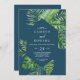 Invitación Palm Tropical Salvaje | Boda Casual de Navy Hexago