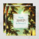 Bonitas tarjetas RSVP de bodas con un tranquilo y sereno tema tropical costero. Tarjetas RSVP de boda marrón y turquesa.